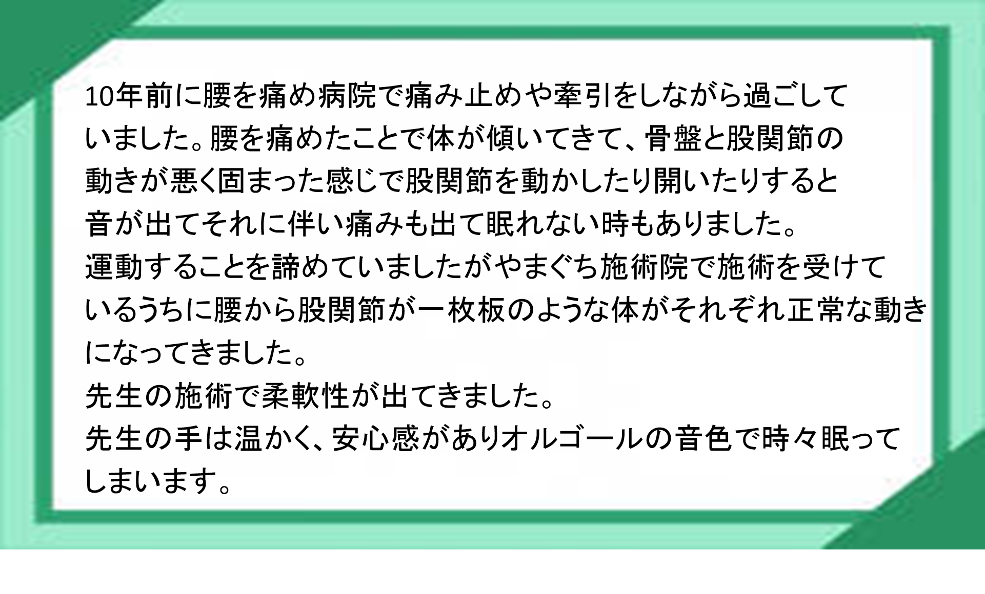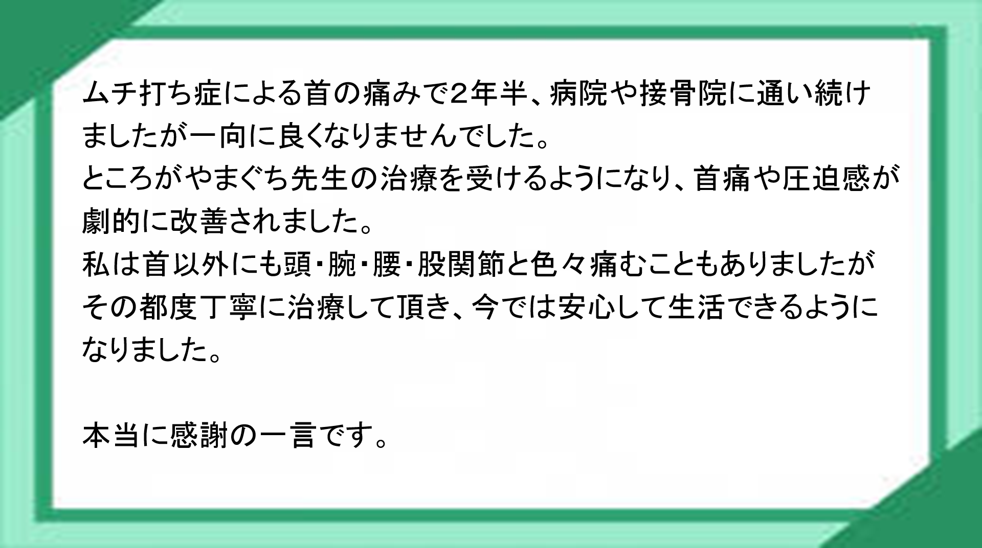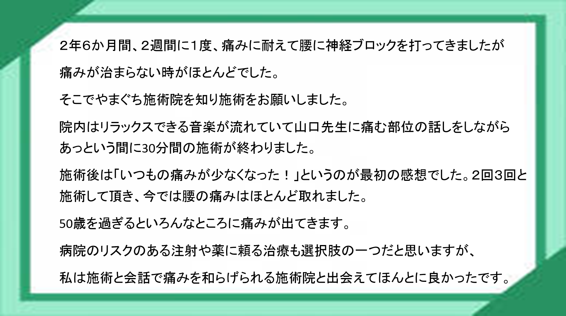 B リハビリ専門家・理学療法士として医療の 現場で働いてきた者が施術を担当